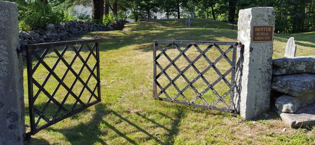 We do not know the date this yard was first used for burials. From the inscriptions recorded by Kimball Webster in 1908 the oldest date found was upon a rough stone marked E.L. K.I.D. Feb. 24, 1759 which probably stands for Kidder. The next to the oldest is the marker for Jean Senter, wife of John Senter, died Jul 10, 1765. John and Jean Senter were the grand-parents of Deacon Thomas Senter. If John Senter was laid to rest along side his wife his marker, along with many other, have long since been destroyed or disappeared. In 1995 the descendants of John and Jean Senter placed a memorial marker at the cemetery in their memory.